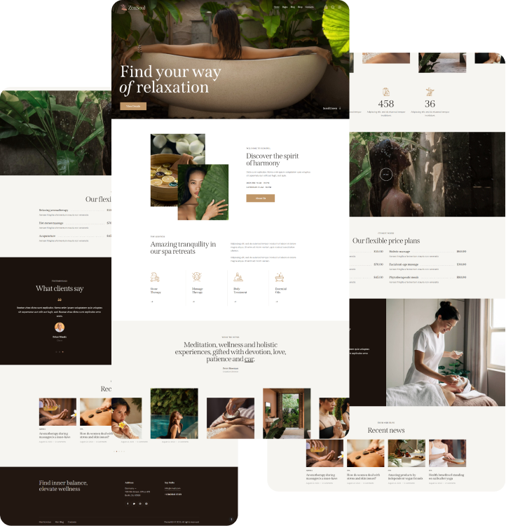 Website spa được ZIP Agency thiết kế dựa trên tiêu chí thẩm mỹ – chuyên nghiệp – thân thiện, giúp spa và thẩm mỹ viện quảng bá thương hiệu, thu hút khách hàng và nâng cao uy tín dịch vụ. Giao diện được tối ưu để thể hiện rõ nét phong cách và đẳng cấp riêng của từng spa, đồng thời truyền tải cảm giác thư giãn, tinh tế và đáng tin cậy cho khách hàng.
